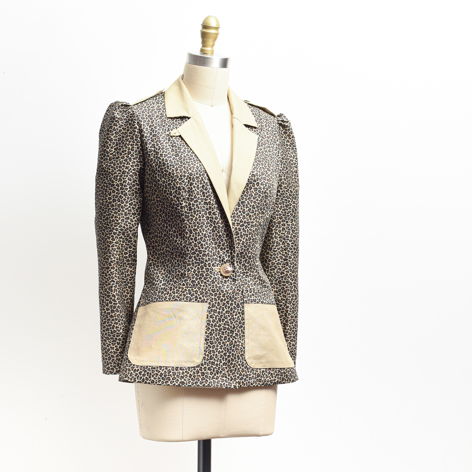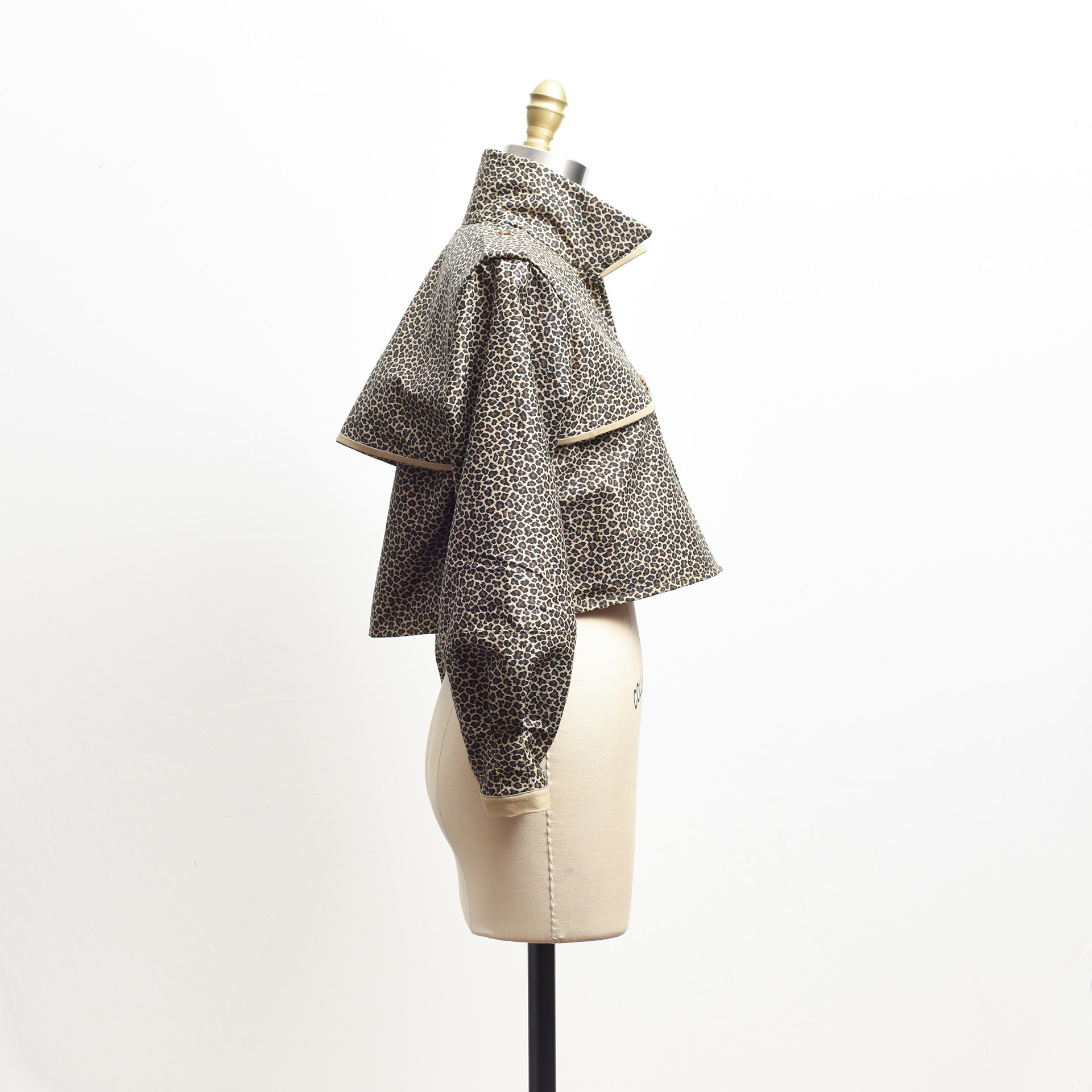 Made from 100% donated repurposed material, this mini collection is inspired by classic outdoor sillhouettes and details combined with the kitsch and glamour of leopard.